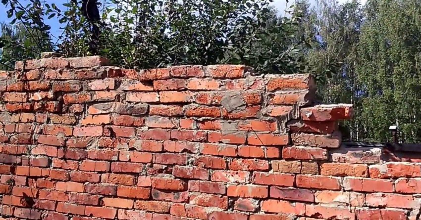 Из кирпичей, уложенных горизонтально и скреплённых цементным раствором, можно создать ограждения любой высоты и формы