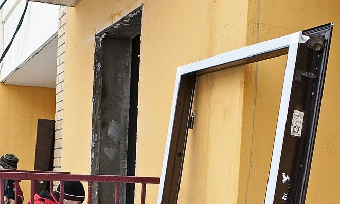 - Подготовка проёма к установке новой двери. На этом этапе удаляют шпаклёвку и кирпич, которые мешают монтажу. Никаких выступов и пустот быть не должно.
