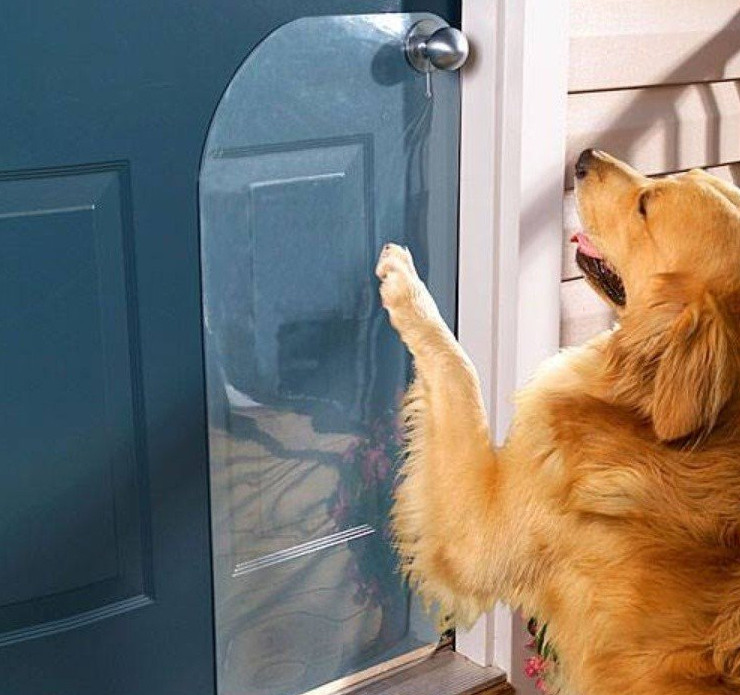Для защиты полотна двери от когтей домашних животных на него можно установить антивандальную накладку