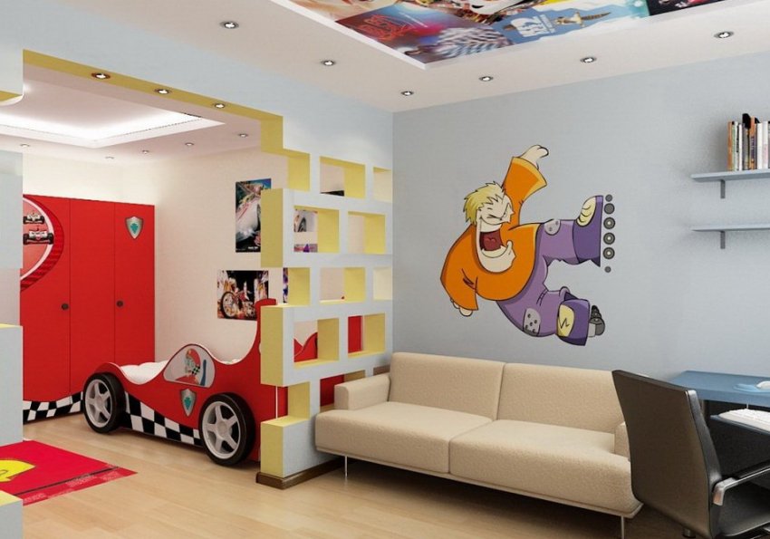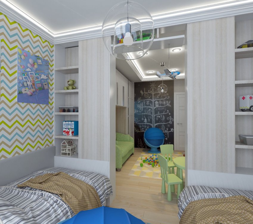 Детскую однополых малышей лучше разделить перегородкой на спальную и игровую зоны