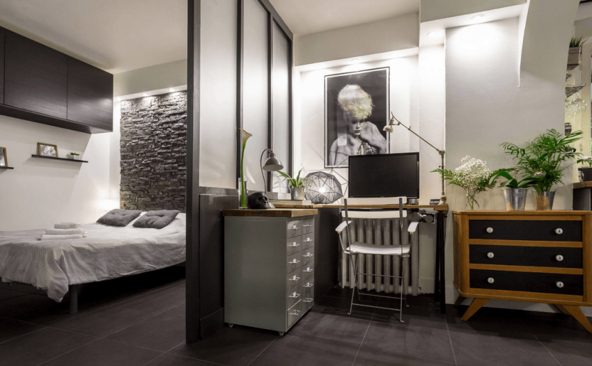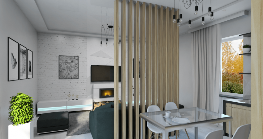 Если вы запланировали разделить комнату, нужно тщательно продумать эксплуатацию полученных функциональных зон. Спальня обычно отделяется стационарной перегородкой, так как сложно представить, что вам понадобится когда-либо открыть эту часть квартиры гостям. С другой стороны, разделение кухни и гостиной/столовой предпочтительно мобильное, чтобы во время готовки запахи не распространялись, а при накрывании стола можно было беспрепятственно переходить из рабочего пространства в зону с угощениями.