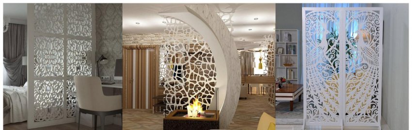 Эксклюзивное украшение комнаты в виде ажурных перегородок из МДФ сразу преобразит скучный интерьер
