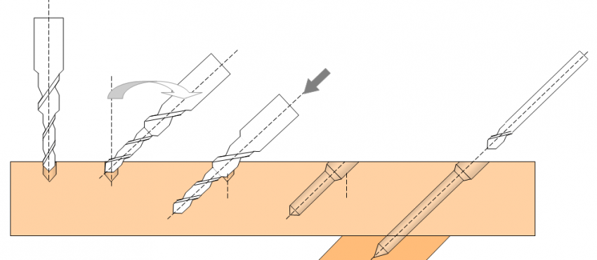 Когда нужно ввинтить саморез под углом, стоит предварительно высверлить отверстие меньшего диаметра