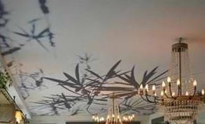 Самый простой (хотя и самый грязный) вариант дизайна – это окрашивание или побелка потолка. Если Вы решили остановиться на этом, помните: 1) данной работой необходимо заниматься на начальном этапе до ремонта стен и пола; 2) потолок должен быть идеально ровным, иначе все его недостатки будут бросаться в глаза. И хотя этот вид дизайна потолков покажется большинству скучным, это далеко не так. При покраске цвет потолка может перекликаться с определенными элементами интерьера: с цветом дверей, стен, штор, а может и любимой вазочки (кто знает, на что способен полет Вашей дизайнерской мысли). Можно разделить потолок на зоны, окрашенные разным цветом, так же можно поступить с побелкой, слегка ее подкрасив.