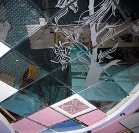 Следующий способ дизайна потолков – самоклеящиеся потолки. Это небольшие (50х50 мм или 60х60 мм) легкие (так как пенопластовые) квадратные плиты. Они клеятся на очищенный потолок специальным клеем, который обычно идет в комплекте (если клея нет, можно использовать любой, но помните: клеить на «жидкие гвозди», «Момент», «Эпоксидный клей» строго запрещается). Варианты оформления самоклеящихся потолков разнообразны. Пенопластовые плитки имеют всевозможную структуру, узоры и цвет. А одинаковый размер позволит вам сочетать в дизайне вашего потолка плиты с разным оформлением.
