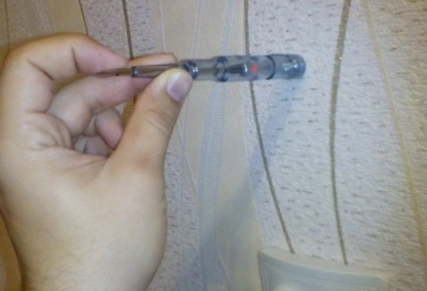 Самый простой способ — проверить индикаторной отверткой. Не все отвертки оснащены индикаторами, но если удалось приобрести нужную, больших проблем поиск не составит. Достаточно взять в руки отвертку, удерживая пальцами ее наконечник, и приблизить к месту предполагаемого нахождения провода в стене.